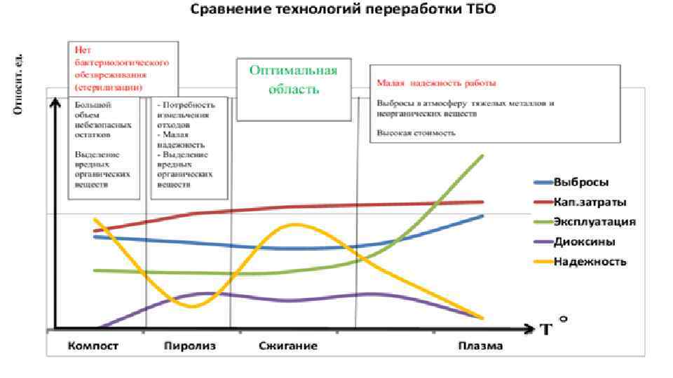 Плазменная или плазмохимическая технология переработки ТБО является высокотемпературной переработки ТБО разновидностью технологии пиролиза (газификации). По этой технологии в реакционной камере осуществляется пиролизный процесс с образованием при высоких температурах (от 1300 до 2000°С) пиролизного газа, который дожигается в реакторе либо в специальной камере дожигания. Технологическая схема установки термической переработки отходов с плазменным дожигателем Общий вид технологического комплекса по переработке ТБО в Израиле Плазменная переработка за счет высокой температуры позволяет утилизировать высокотоксичные опасные отходы, в том числе медицинские. Плазменный метод уничтожения отходов подвергает их воздействию таких высоких температур, что органическая составляющая отходов газифицируется и подвергается разделению на молекулы, а неорганическая составляющая образует стекловидный шлак.