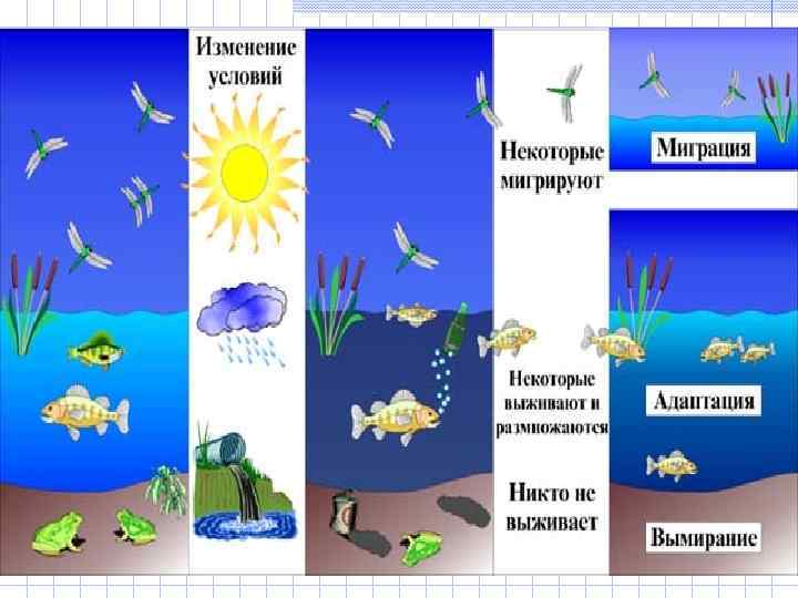 Адаптация это процесс приспособления организма к определенным условиям окружающей среды • Поведенческая адаптация (затаивание у жертв, выслеживание добычи у хищников) • Физиологическая адаптация (зимовка, миграция) • Морфологическая адаптация (изменение жизненных форм растений и животных)