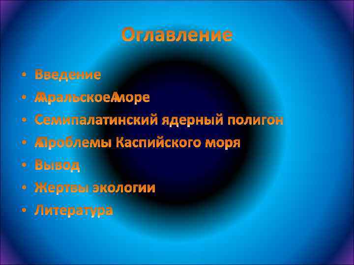 • Нужно отметить, что наиболее сильный урон Каспию наносят нефтяные предприятия и танкеры. К примеру, четыре отработанных скважины на казахстанском шельфе Каспийского моря дали утечку нефти, где образовались нефтяные пятна длиной до километра и шириной до 20 метров. Отсюда и вымирание ихтиофауны. Одним из опасных источников загрязнения являются заброшенные скважины, утечки на нефтяных объектах и т. д. В последние сто лет Каспий был полигоном для различного рода испытаний, и более всего пострадали каспийские шельфы. На свете нет такого уникального водоема, как Каспий, в котором происходит естественная переработка органических и неорганических отходов, однако, способность экосистемы Каспия к самоочищению полностью исчерпана. В ближайшем будущем интенсивное освоение биологических и углеводородных ресурсов может окончательно погубить Каспий, а вместе с ним флору и фауну этого края, и жизни людей, которым не посчастливится здесь родиться.