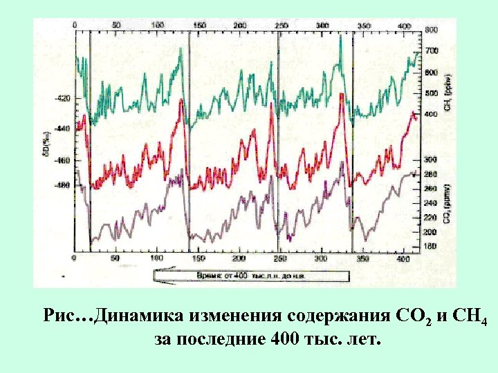 Рис…Динамика изменения содержания СО 2 и СН 4 за последние 400 тыс. лет.