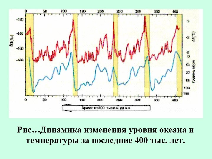 Рис…Динамика изменения уровня океана и температуры за последние 400 тыс. лет.