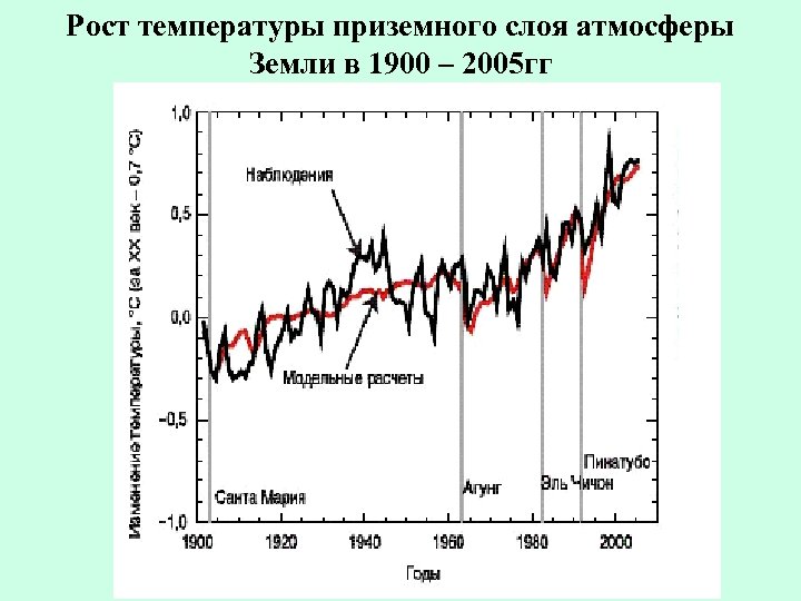 Рост температуры приземного слоя атмосферы Земли в 1900 – 2005 гг