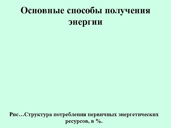 Основные способы получения энергии Рис…Структура потребления первичных энергетических ресурсов, в %.