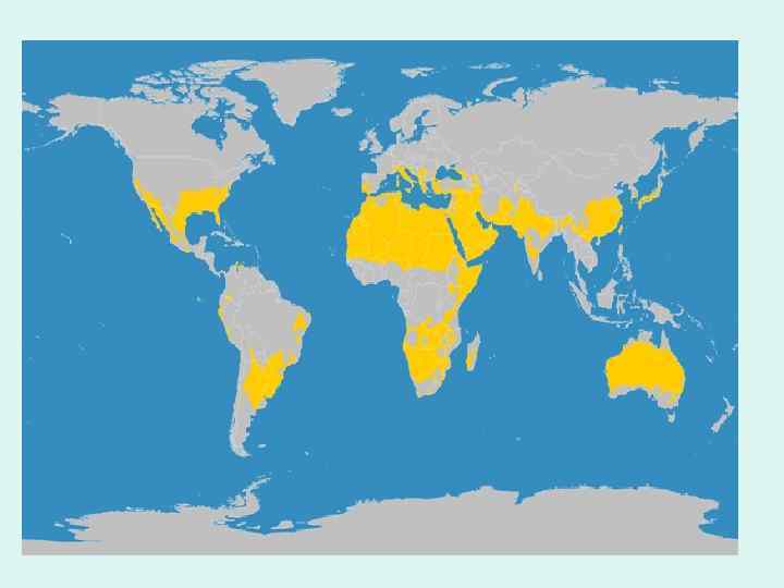 – Засушливые земли покрывают 41% суши; – на них проживает более 2 миллиардов людей – Здесь самый низкий уровень благосостояния – Лишь 8% воды поступает из возобновляемых источников – Обеспеченность водой на душу населения составляет две трети от прожиточного минимума – Примерно 10 -20% площади засушливых земель деградировали – В 1990 -х гг. здесь были самые высокие темпы роста населения