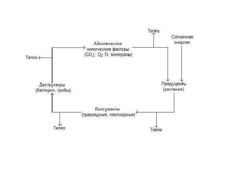 Экосистема • Экосистема - биологическая система (биогеоценоз), состоящая из сообщества живых организмов (биоценоз), среды их обитания (биотоп), системы связей, осуществляющей обмен веществом и энергией между ними. Термин впервые был предложен английским экологом А. Тенсли в 1935 году 5