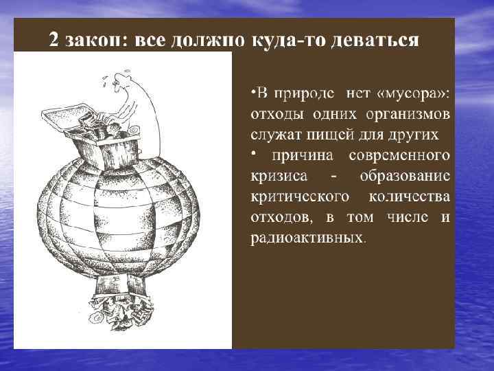 Законы Барри Коммонера Коммонер Б. Замыкающийся круг. Л. : Гидрометеоиздат, 1974
