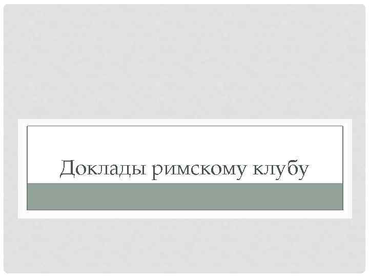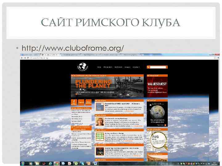 САЙТ РИМСКОГО КЛУБА • http: //www. clubofrome. org/