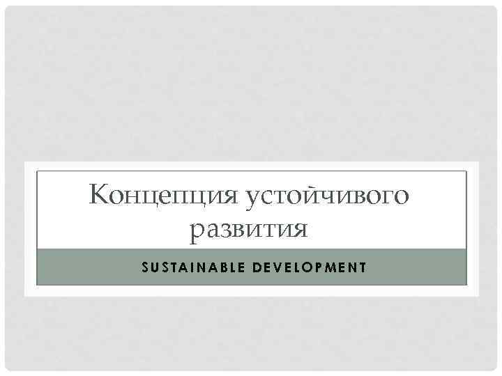 Концепция устойчивого развития SUSTAINABLE DEVELOPMENT