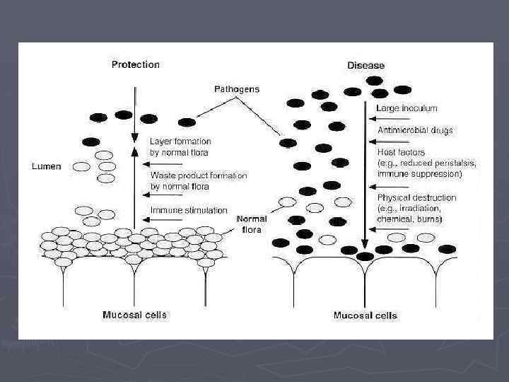 Значение нормальной микрофлоры тела человека Антагонизм к патогенным видам (фактор неспецифической резистентности – естественного иммунитета). 2. Способствует процессам пищеварения в кишечнике (в целом – способствует нормальному функционированию желудочно-кишечного тракта). 3. Способствует организации, созреванию и функционированию иммунной системы. 1.