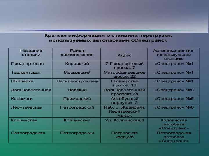Характеристики полигонов ТКО в Санкт-Петербурге Полигоны ПТО-1 ПТО-3 1974 г. 1972 г. 34, 52 83, 5 Характеристики 1 Начало функционирования полигона 2 Занимаемая площадь, га 3 Вместимость, млн. м 3 21 40 4 Объём захороненных отходов, млн. м 3 (на 1. 04) 33 44, 7 Характеристики мусороперерабатывающих заводов ТКО в Санкт. Петербурге Заводы ОЗ МПБО-2 Характеристики 1 Год создания 1971 1994 2 Мощность, тыс. м 3/год 1000 3 Производительность (компост), тыс. т/год 140 4 Число биобарабанов 6 4 5 Занимаемая площадь, га 8 6