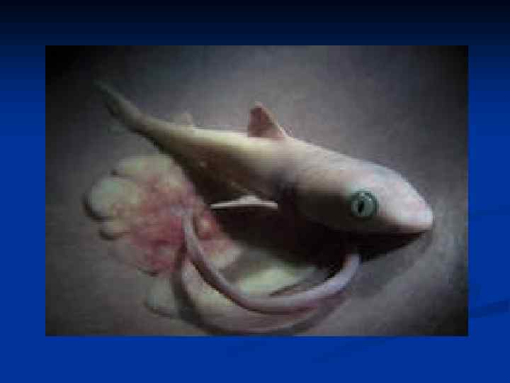 Хрящевые рыбы Три способа эмбрионизации: n 1. Яйцекладущие n 2. Живородящие n 3. Яйцеживородящие. n Развитие длительное, внутри тела самки или за его пределами, в плотной скорлуповой оболочке. n Если развиваются внутри тела самки, имеют специальные органы наподобие плаценты. n