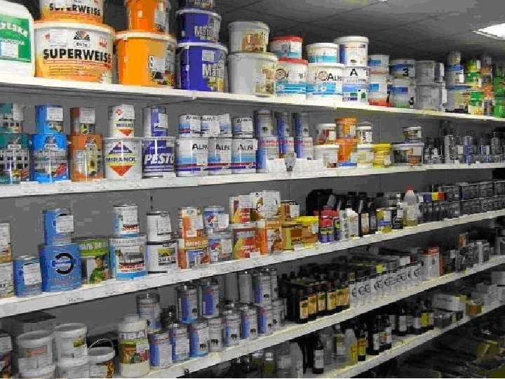 Лакокрасочные материалы Использование строителями в помещениях краски, предназначенной только для наружных работ, ведет к отравлению ее вредными компонентами. В состав таких лакокрасочных материалов входят вещества из списка опасных для здоровья: растворители, фенол, крезол, ксилол.