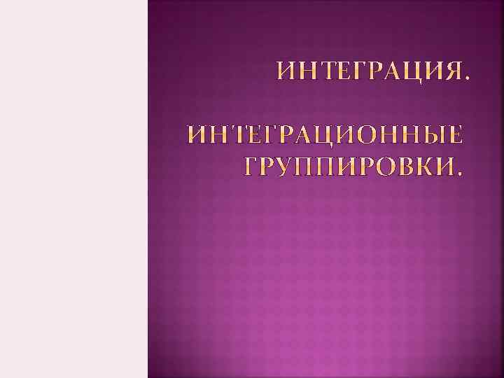 Экономическая интеграция – высшая ступень международного разделения труда; процесс развития глубоких и устойчивых взаимосвязей групп стран, основанный на проведении или согласованной межгосударственной экономики и политики.