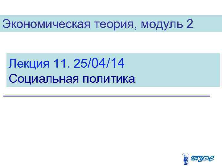 Экономическая теория, модуль 2 Лекция 11. 25/04/14 Социальная политика