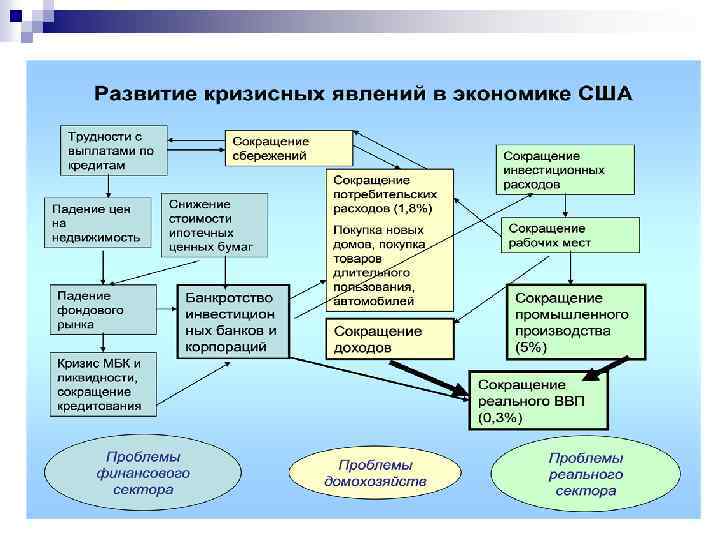 Л. Григорьев «Рубежи кризиса» n n n n n 1 — жилищный кризис в США и вторичные бумаги — до августа 2 — кризис ликвидности у инвестиционных банков — с мая 2008 3 — паралич кредита — с августа-сентября 4 — кризис доверия — биржа — взаимодействие — с сентября 5 — мягкая национализация ключевых банков — сентябрь — октябрь 6 — экономический национализм, угроза протекционизма — октябрь и дальше 7 — угроза паники в сберегательной системе — с октября пошло общее повышение потолков страхования депозитов (100 – 400 – 700) 8 — ограничение последствий для реального сектора 9 — восстановление доверия к рынкам 10 — реформа мониторинга и регулирования международной финансовой системы