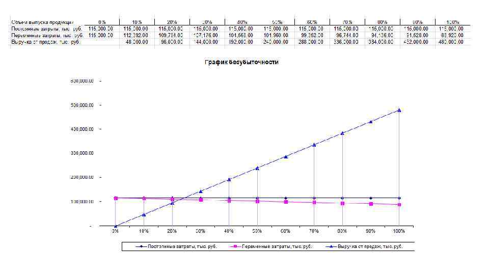 Расчет точки безубыточности
