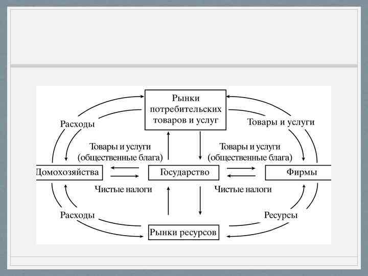 Роль домохозяйства в экономике • Экономисты выделяют три основные субъекта рыночного хозяйства – домохозяйство, фирма и государство. Их взаимоотношения показаны в виде модели экономического кругооборота