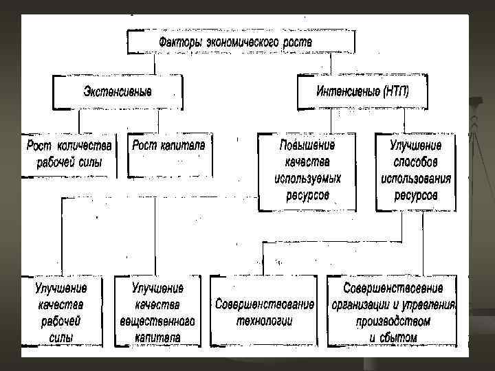 Прямыми считаются факторы, которые делают рост физически возможным. В эту группу входят факторы предложения: n n n количество и качество трудовых ресурсов; количество и качество природных ресурсов; объем основного капитала; технология и организация производства; уровень развития предпринимательских способностей в обществе