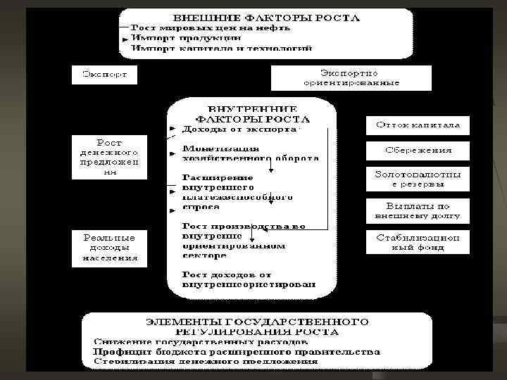 Косвенные факторы — это условия, позволяющие реализовать имеющиеся у общества возможности к экономическому росту Такие условия создаются факторами спроса и распределения: n n n n снижением степени монополизации рынка; налоговым климатом в экономике; эффективностью кредитно-банковской системы; ростом потребительских, инвестиционных и государственных расходов; расширением экспортных поставок; возможностями перераспределения производственных ресурсов в экономике; действующей системой распределения доходов.