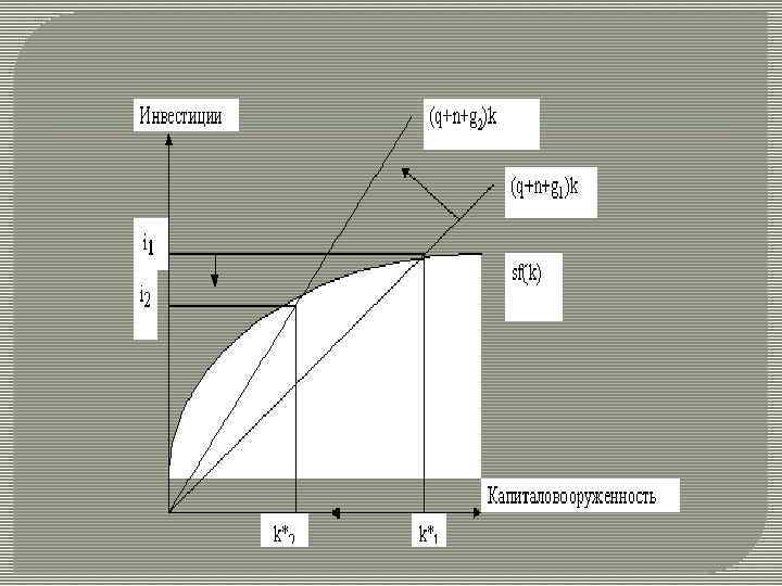 В этом тождестве появляется новый элемент g – темп технологического прогресса. Если g – величина достаточно большая, то общее количество единиц труда с постоянной эффективностью растет быстро, а прирост капитала на такую единицу труда сравнительно мал и может стать отрицательным.