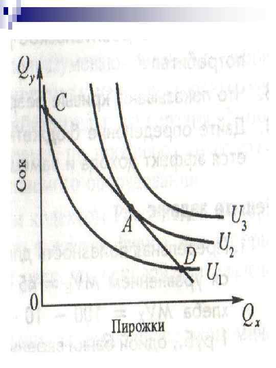 ХАРАКТЕРИСТИКА КРИВЫХ БЕЗРАЗЛИЧИЯ - Имеют отрицательный наклон - Не пересекаются - Кривые, расположенные выше, соответствуют более высоким уровням полезности