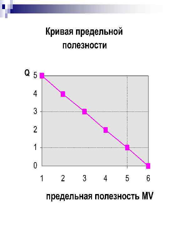 n Предельная полезность – дополнительная полезность, которую извлекает потребитель из каждой дополнительной единицы блага, или это возрастание общей полезности при увеличении объема потребляемого блага на одну единицу.