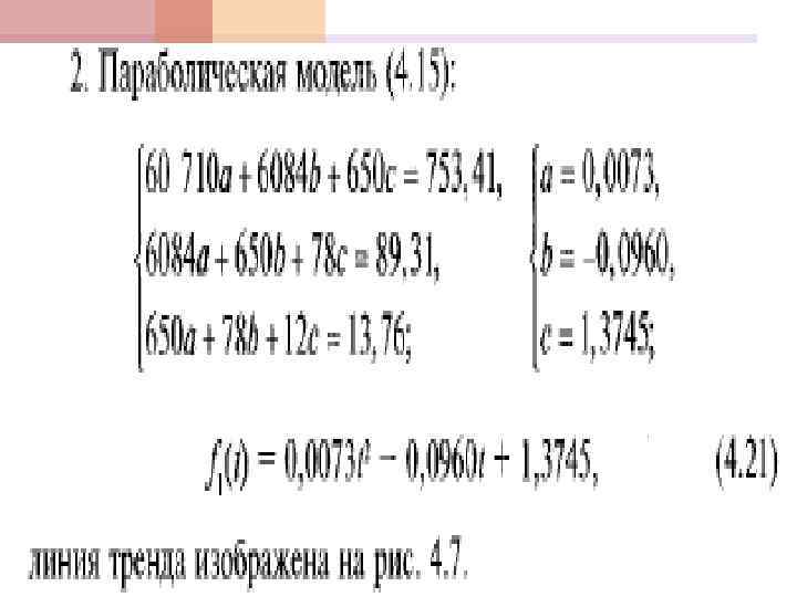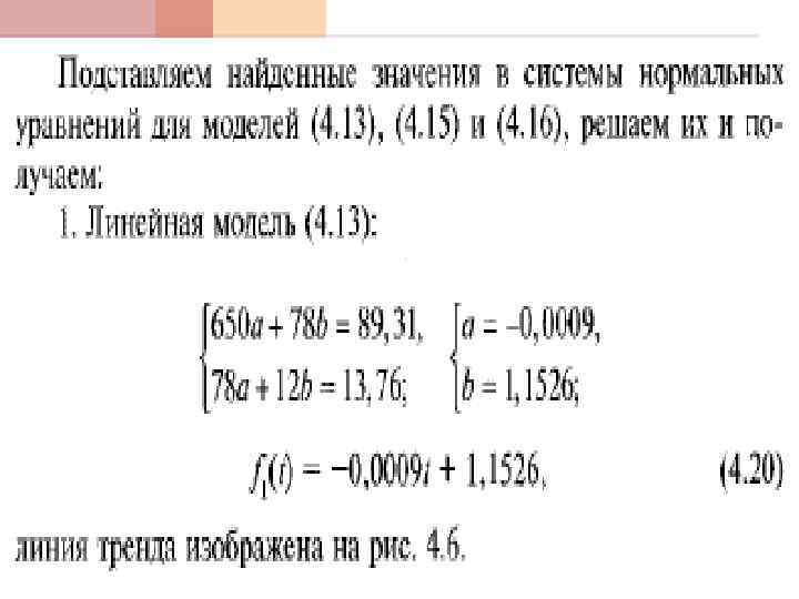 Функции тренда Линейная модель (4. 13) Степенная модель (4. 14) Параболическая модель (4. 15)