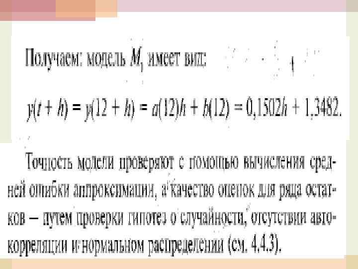 из 4. 20 Т. е. прогнозную оценку в момент времени t на h шагов вычисляют с помощью модели: y(t+h) =a(t)h