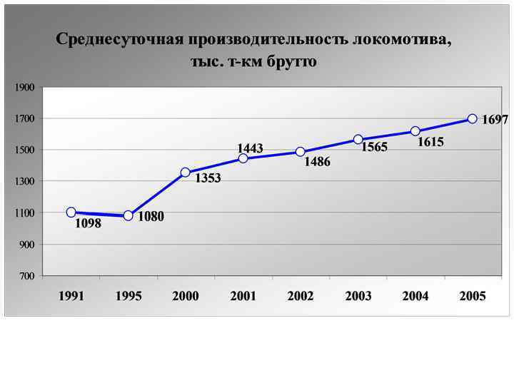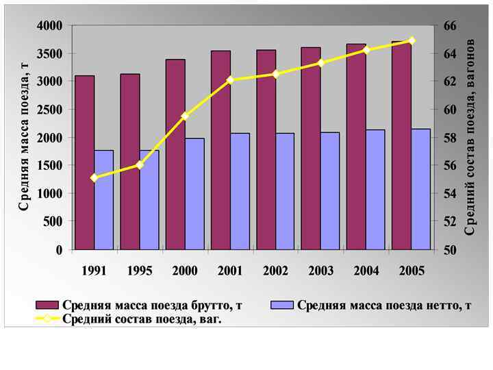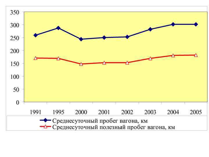 Динамика средней дальности грузовых перевозок на российских железных дорогах Средняя дальность, км, по годам Страна 1990 СССР Россия 1995 1996 1997 1998 1999 2000 2001 2002 2003 2004 2005 1181 1240 1241 1222 1272 1312 1356 1392 1437 1477 1575 1179
