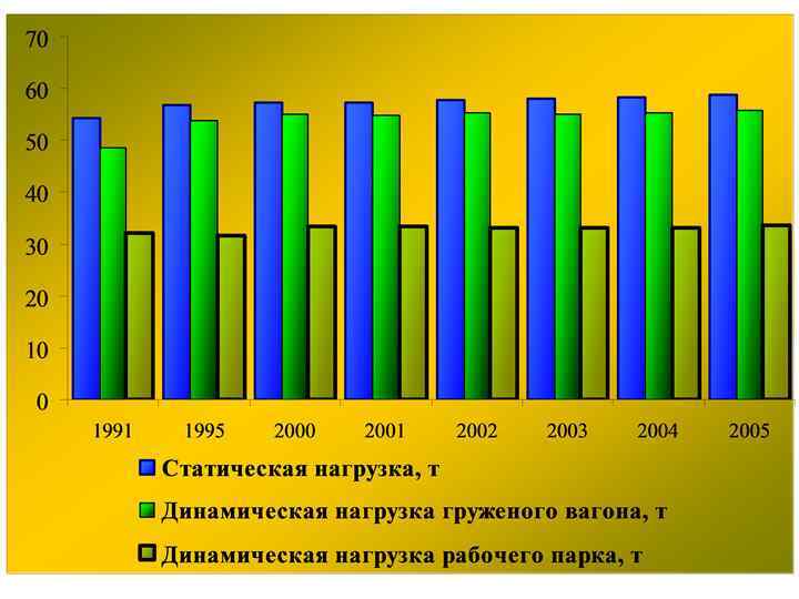Структура грузов, перевозимых железнодорожным транспортом Наименование показателя Годы 1990 1995 2000 2003 2005 100 100 100 18, 1 23, 9 23, 2 22, 4 23, 0 0, 6 0, 8 1, 0 11, 5 14, 6 14, 8 17, 7 17, 6 руды всякой 6, 6 10, 2 10, 8 10, 0 10, 5 черных металлов 5, 1 5, 2 6, 0 5, 8 5, 9 лома черных металлов 1, 6 1, 2 1, 8 1, 7 1, 6 химических и минеральных удобрений 3, 8 3, 1 3, 4 3, 3 3, 2 28, 8 23, 5 22, 0 19, 6 22, 4 лесных грузов 6, 2 4, 7 4, 6 4, 8 зерна и продуктов перемола 3, 8 2, 7 2, 0 2, 2 1, 8 прочих грузов 14, 1 10, 4 11, 7 8, 2 Всего отправлено грузов, в том числе: каменного угля кокса нефти и нефтепродуктов минеральных и строительных материалов