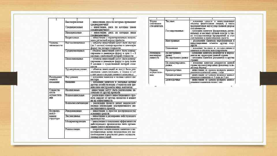 Классификация инвестиций