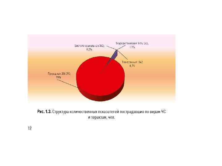 6, 0; 1% 51; 8% 574; 91% ЧС техногенного характера ЧС природного характера Теракты Структура количественных показателей погибших по видам ЧС и терактам, чел