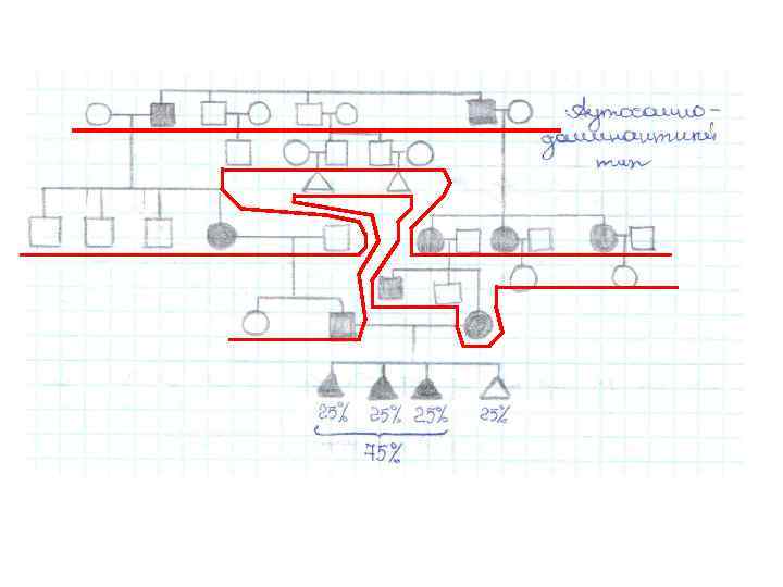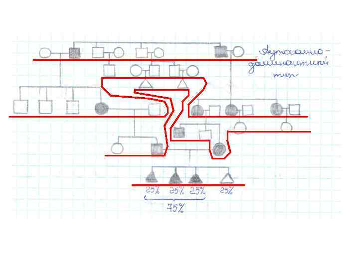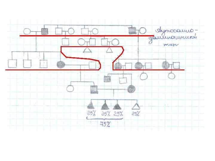 представители одного поколения располагаются строго на одном уровне Тип наследования: аутосомно-доминантный.