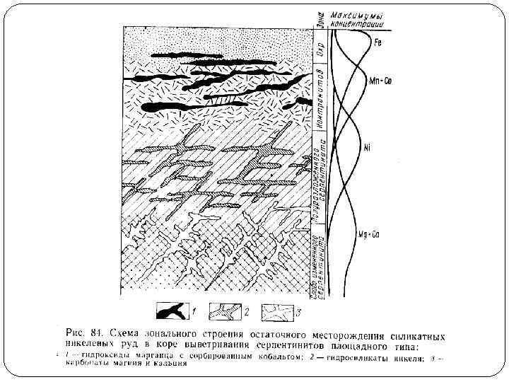 2. Инфильтрационный класс МПИ образуются при концентрации продуктов выноса из коры выветривания в проницаемых для подземных вод терригенных породах. Тела имеют линзовидную, серповидную и неправильную форму. 2. 1. Контактово-карстовый подкласс – силикатные никелевые руды в виде гарниерита (Ni, Mg)6 [Si 4 O 10](OH)8 концентрируются в глинах на щелочном геохимическом барьере.