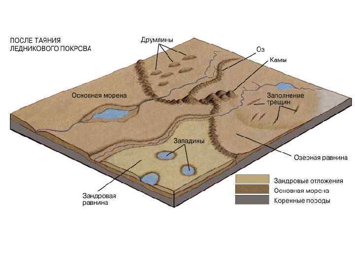 Флювиогляциальные отложения (от лат. fluvius река и glacialis - ледяной) – осадки, отложенные потоками талых ледниковых вод Водно-ледниковые отложения