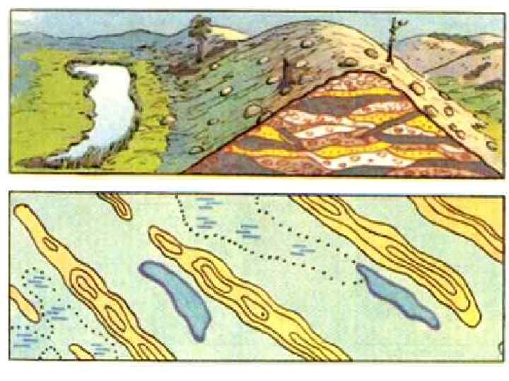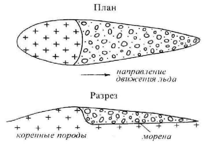 • Друмлины — (ирл. droimnín) продолговатые холмы обтекаемой эллиптической формы из материала преимуществе нно основной морены.