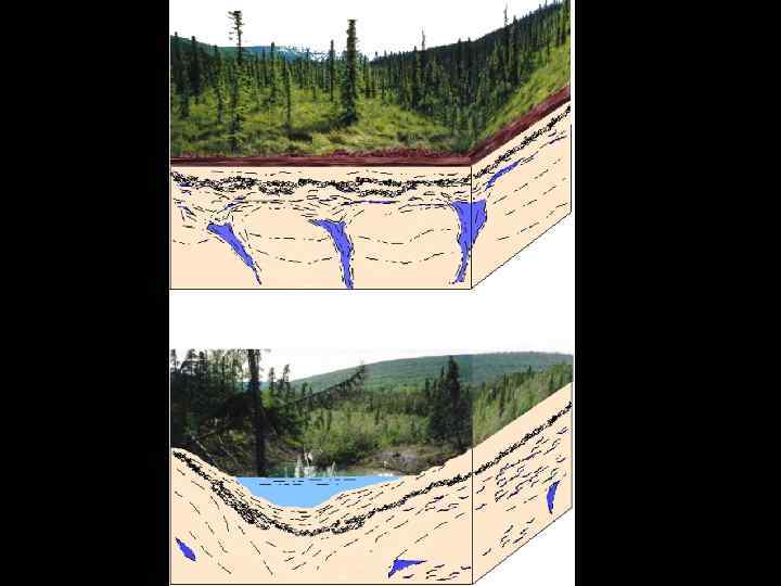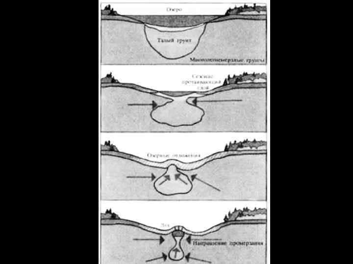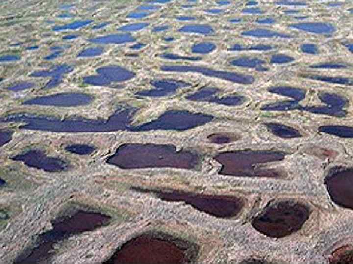 Термокарстовые явления - процесс местного проседания поверхности почвы и образования отрицательных форм рельефа за счет вытаивания подземного льда, содержащегося в рыхлых горных породах.