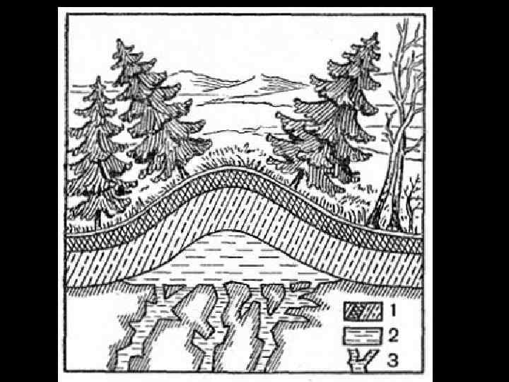Основными рельефообразующими процессами в районах вечной мерзлоты являются: 1. Пучение грунтов и образование наледей; 2. Криогенное выветривание и морозное растрескивание грунтов; 3. Морозная сортировка и солифлюкция.