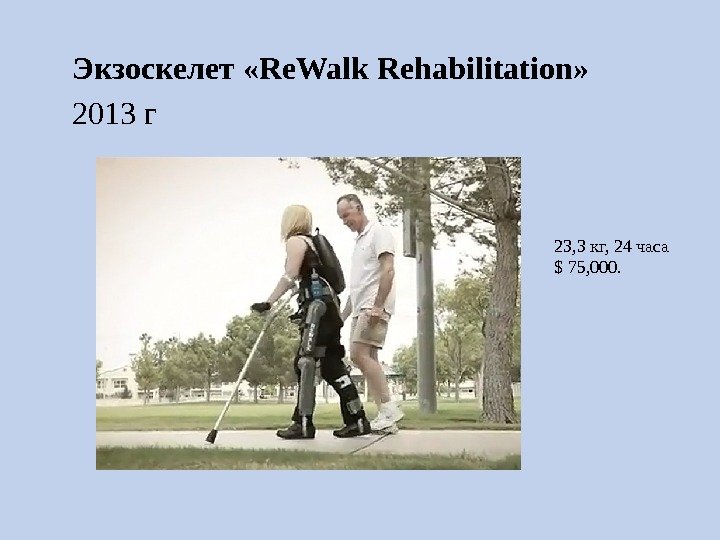 Экзоскелет «Re. Walk Rehabilitation» 2013 г 23, 3 кг, 24 часа $ 75, 000.
