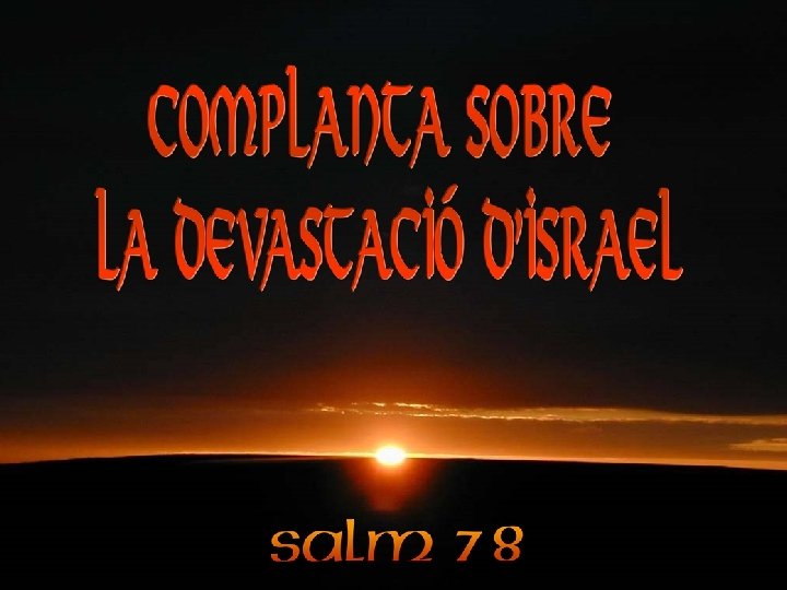 +++ Una vegada més, Israel clama a Déu amb una oració profusament revestida de tons dramàtics. La ruïna i el saqueig de la ciutat santa de Jerusalem és el cos d'aquesta súplica-lament del salm: «Mireu, Déu meu, els pagans envaeixen la vostra heretat i profanen el temple sant. . . » +++ El poble és conscient que la desolació de la que amb orgull en deien «l'heretat de Jahvè» s'ha esdevingut a causa dels pecats, tant dels comesos pels seus avantpassats — «No ens tingueu en compte les culpes passades. . . som orfes del tot» —, com dels propis. +++ Per això, perquè els seus pecats pesen com una llosa de la qual no es poden alliberar, apel·len al Déu misericordiós amb una invocació plena d'esperança. Acudeixen a Jahvè perquè sigui ell mateix qui tregui els pecats del poble: «Defenseu-nos, Déu, salvador nostre, per l'honor del vostre nom; allibereu-nos i perdoneu-nos els pecats. . . » +++ Com respon Déu? Es pot quedar sord davant aquesta súplica? Dóna l'esquena al seu poble perquè li ha estat infidel? Aquest Déu no existeix! +++ Déu, a qui no s’escapa cap crit de dolor, respon a l'oració del seu poble enviant el seu Fill com a salvador. Jesucrist és enviat per a treure el pecat, no ja solament del poble, sinó del món, de tota la humanitat.