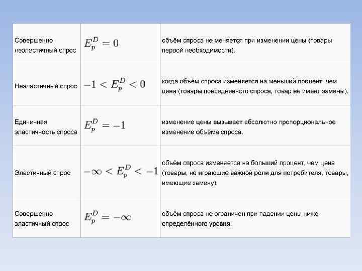 Эластичность спроса помогает узнать, как скажется понижение стоимости товара на объемах их продажи и выручке. Оценка эластичности происходит при помощи коэффициента эластичности, который определяется как отношение процентного изменения одной величины к практическому изменению другой в абсолютных и относительных показателях. Ed= ∆Q/Q : ∆ P/P = (Q 2 –Q 1)/Q 1 : (P 2 –P 1)/P 1 : %