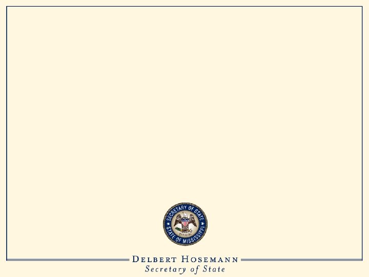 Contact Information The Mississippi Secretary of State’s Office, Elections Division Kim Turner, Assistant Secretary of State, Elections P. O. Box 136 Jackson, MS 39205 Elections Hotline (800)829 -6786 601 -359 -1350 www. sos. ms. gov Derrick Cooper MS Secretary of State’s Office Phone: 601 -359 -1348 Email: derrick. cooper@sos. ms. gov Fax: 601 -359 -5019