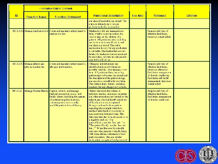 Standard Vocabularies • CHI + NCVHS efforts: Patient Medical Record Information (PMRI) terminology standards • Examples: SNOMED-CT, ICD-9, LOINC, CPT, etc • Facilitation: Free licensing of SNOMED in USA as part of UMLS • Use: HL 7 Common Terminology Services (CTS) standard