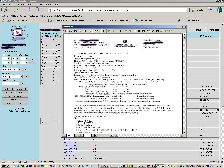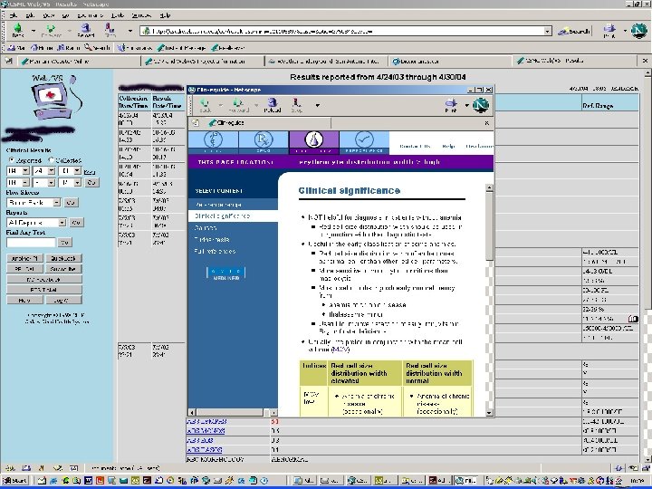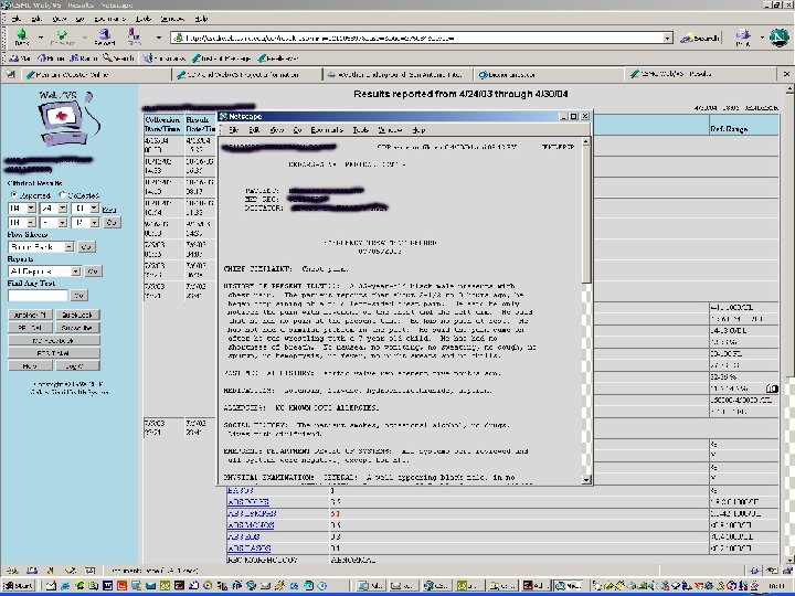 Advantages of Computer Records • Access: Speed, remote location, simultaneous use (even if just an “electronic typewriter”) • Legibility • Reduced data entry: Reuse data, reduce redundant tests • Better organization: Structure • Multiple views: Aggregation – Example: Summary report, structured flow sheet (contrast different data types) – Alter display based on context