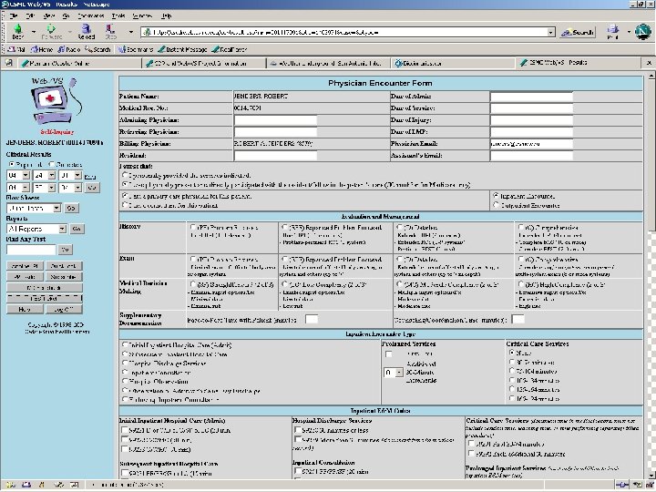 Examples: “Classical” EMRs • COSTAR – Originally in 1960 s, disseminated in late 1970 s – Encounter form input – Modular design: security, registration, scheduling, billing, database, reporting – MQL: ad hoc data queries – Display by encounter or problem (multiple views)