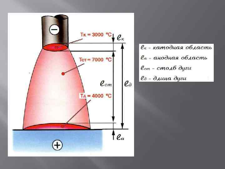 Угольным (неплавящимся) электродом 1 – угольный электрод 2 – катодное пятно 3 – газовый столб дуги 4 – анодное пятно (кратер) 5 – кромки свариваемых деталей