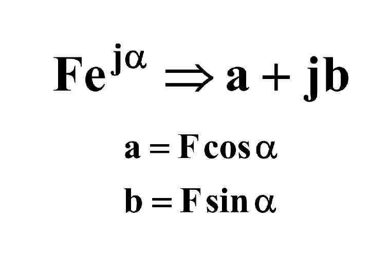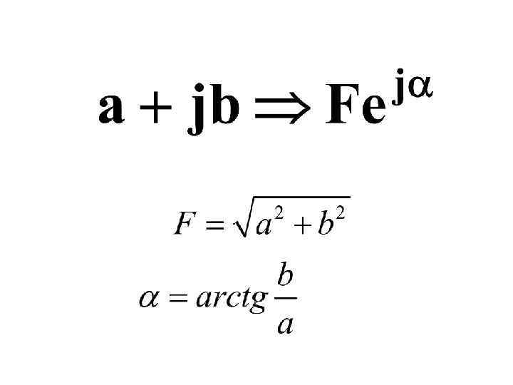 Алгебраическая форма записи КЧ А = А ( соs α + jsin α), где А – Модуль КЧ, α – аргумент КЧ А= α = arctg в/a a = А cos α - Вещественная часть КЧ в = j. А sin α – Мнимая часть КЧ