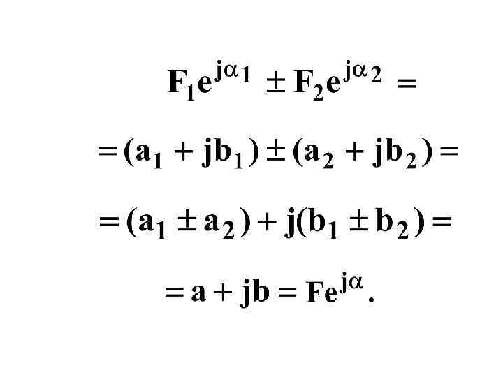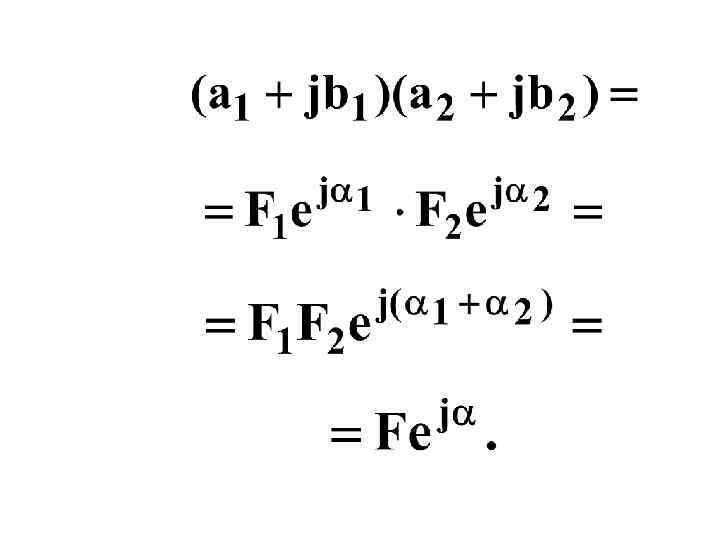 -1 Мнимая ось Комплексная плоскость. Комплексное изображение функции 0 +j в А • А α A – комплексное число (КЧ) a +1 Вещественна ось А = а + jв = А cos α + j A sin α -j j=