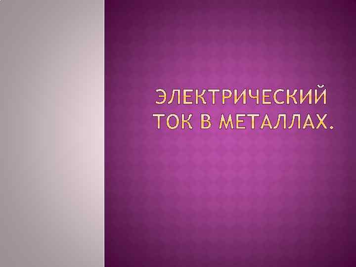 Электрический ток в металлах – это упорядоченное движение электронов под действием электрического поля. Опыты показывают, что при протекании тока по металлическому проводнику переноса вещества не происходит, следовательно, ионы металла не принимают участия в переносе электрического заряда.