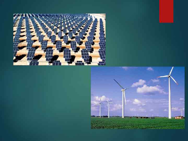 Альтернативная энергетика. Основными видами альтернативной энергетики являются: • Ветроэнергетика — использование кинетической энергии ветра для получения электроэнергии; • Гелиоэнергетика — получение электрической энергии из энергии солнечных лучей;